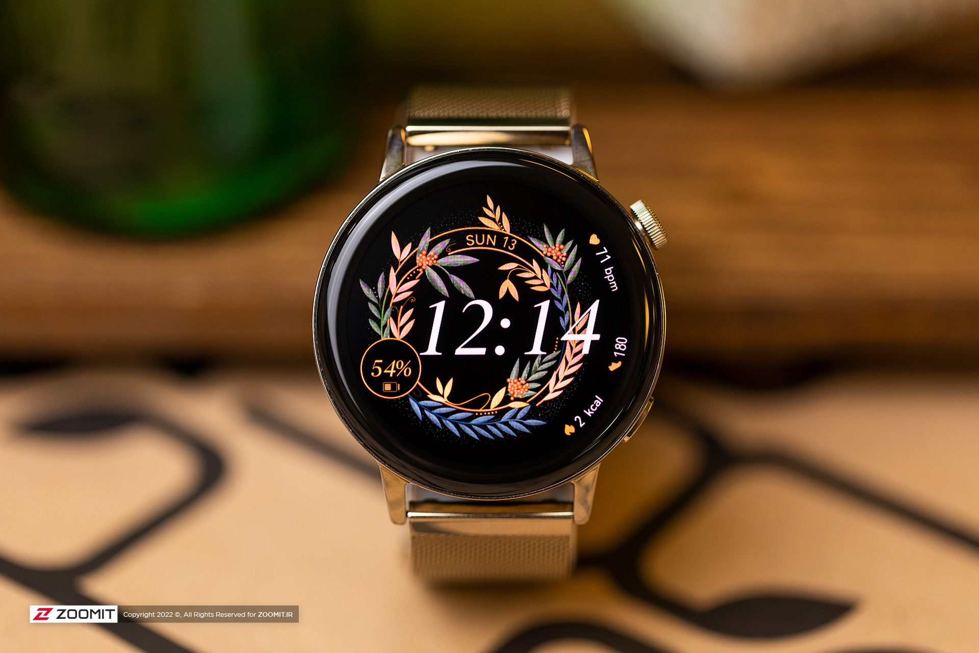 در مدت استفاده از ساعت، بدون ناراحتی چه در طول خواب، چه بیداری در شرایط مختلف، از Watch GT3 راضی بودیم و مشکلی حس نکردیم؛ اما توجه داشته باشید که اندازهی ۴۲ میلیمتری برای افرادی با مچ پهن، مناسب نیست. تعویض بندهای Watch GT3 بهسادگی انجام میشود و بند مدل Milanese طلایی این ساعت هم کیفیت ساخت بسیار بالایی دارد؛ اما وجود بافت نرم و راحتش، از اتصالات محکم و قابل اطمینانی برخوردار نیست. اتصال آهنربایی بند Milanese نسبت به بندهای مشابه ضعیفتر است و بهطور آزاردهندهای در استفادههای عادی شل شده و روی مچ جابهجا میشود؛ مشکلی که از کیفیت تجربهی کاربری ساعت میکاهد.