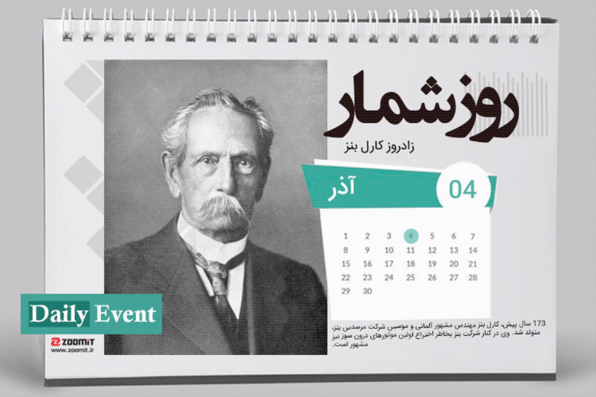 ۴ آذر: تولد کارل بنز مهندس مشهور آلمانی و بنیانگذار بنز