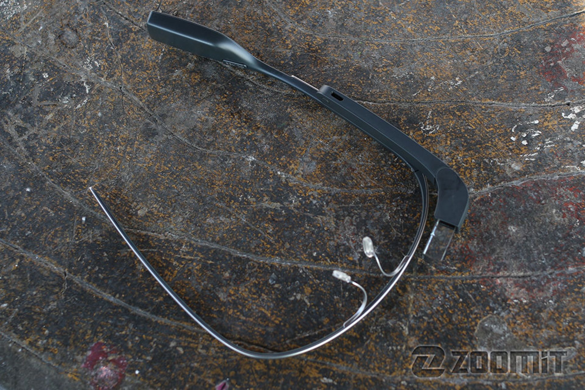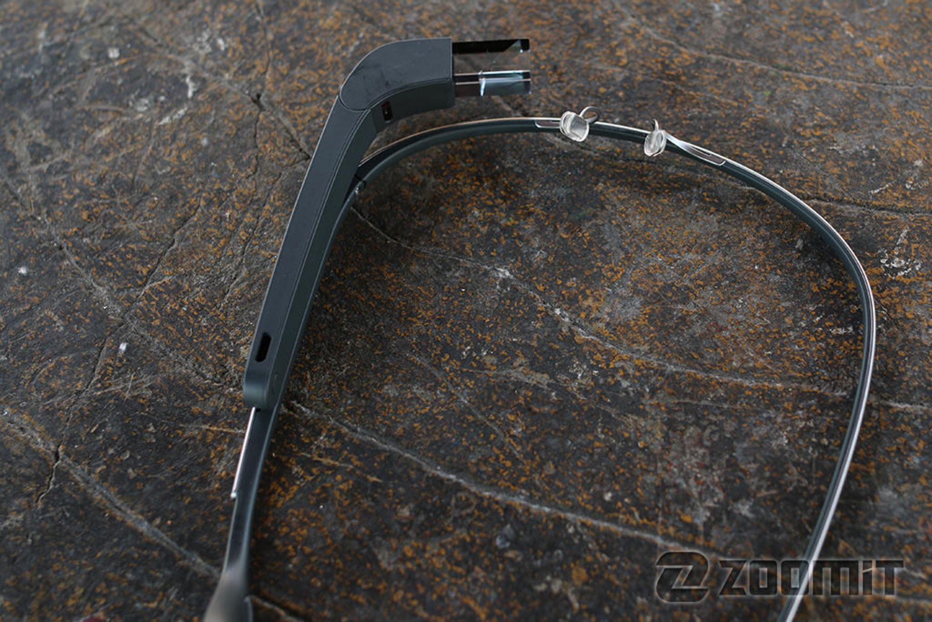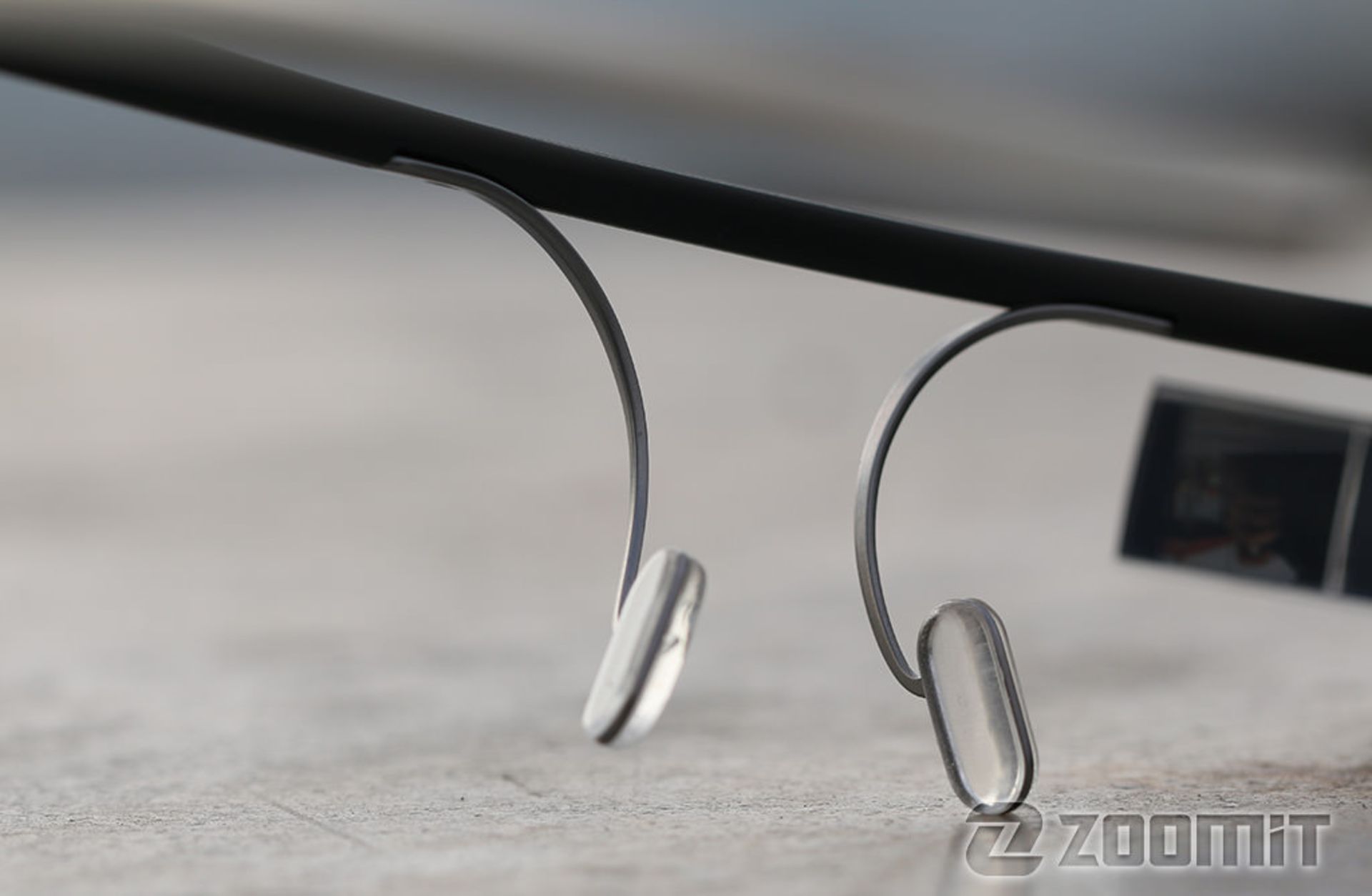 بخش اصلی بدنهی باریک گوگل گلس، همان هدبندی است که بصورت یکتکه در کنار سر کاربر قرار میگیرد. این بخش از جنس تیتانیوم بوده و با وجود قابلیت انعطاف، به اندازهی کافی مستحکم به نظر میرسد.