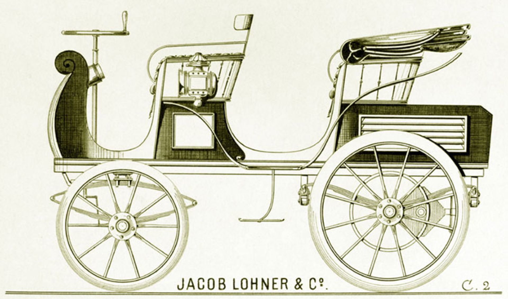 فردیناند پورشه در سال ۱۸۹۸ به شرکت Jacob Lohner & Company در وین پیوست. این شرکت معتبر برای پادشاه آن زمان اتریش یعنی Franz Joseph I و پادشاهان کشورهای دیگر مانند سوئد، بریتانیا و رومانی، کالسکه تولید میکرد. اولین طراحی این شرکت، Egger-Lohner نام داشت که ابتدا در ۲۶ ژوئن سال ۱۸۹۸ در وین از آن رونمایی شد. پورشه روی تمامی قطعات اصلی این وسیلهی نقلیه، کد P1 را حکاکی کرده بود. این کد به معنای اولین طراحی پورشه شناخته میشود.