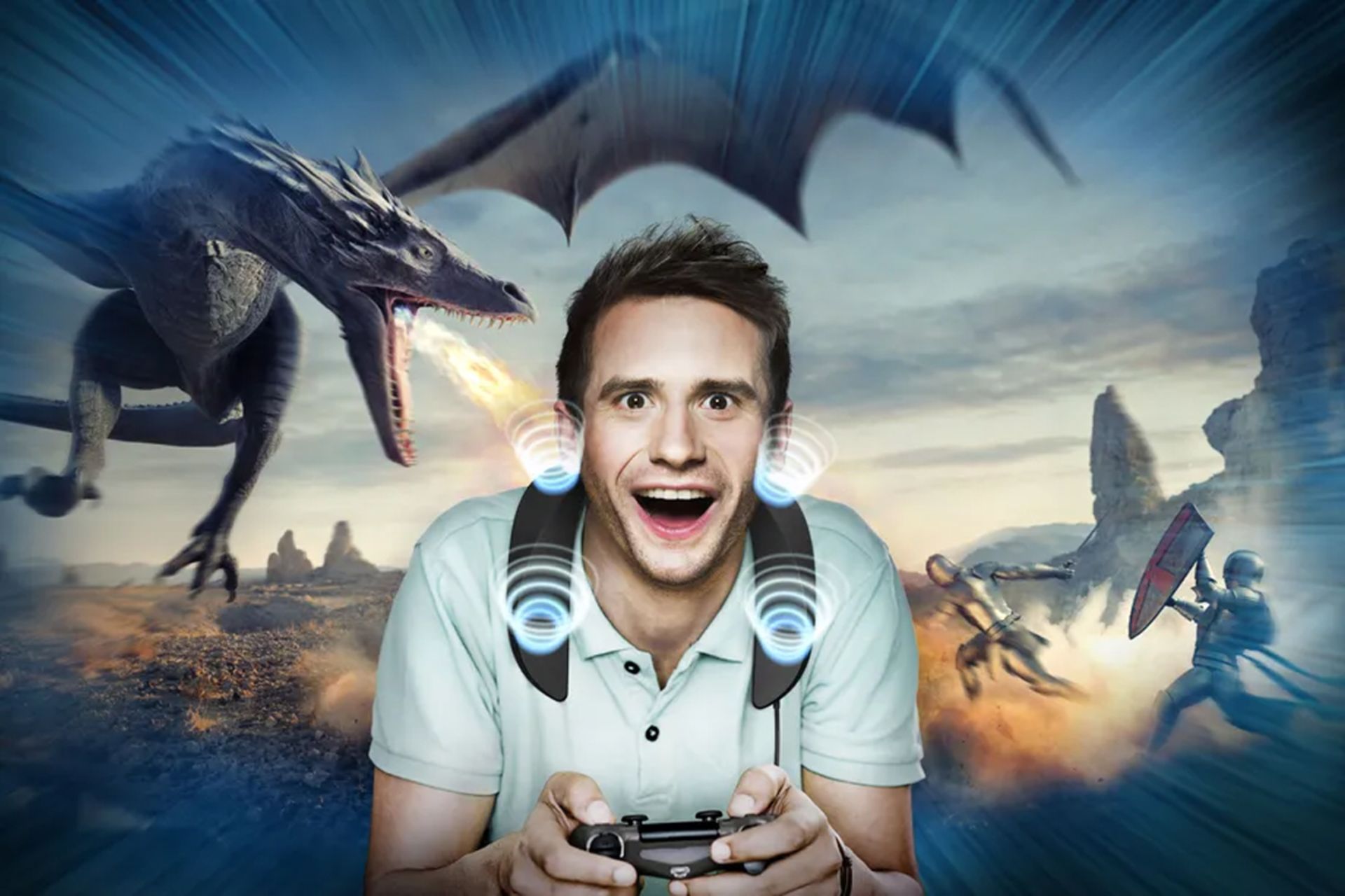 ورج نمونهای کماهمیت از این اقدام پاناسونیک را بررسی کرده است. در تصویر زیر هدست پاناسونیک را دور گردن گیمری مشاهده میکنید که با ایجاد صدایی شگفتانگیز، او را تحت تأثیر قرار داده است: